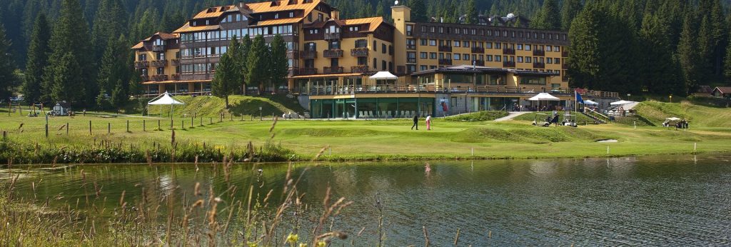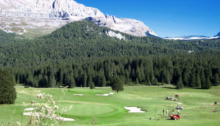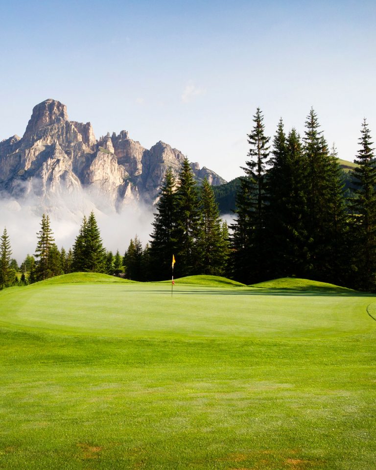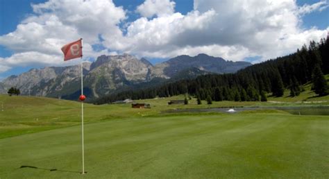 Letni golf u stóp Dolomitów Brenta? Na przełęczy Campo Carlo Magno znajdziesz jeden z najwyżej położonych i najstarszych pól w Europie: 9 dołków / 18 tee, par 70, ok. 5,47 km, na 1650 m n.p.m. – z widokiem na Brenty i w sercu Parku Adamello-Brenta.