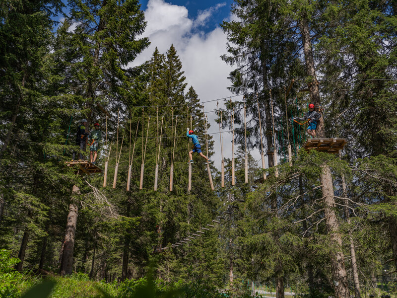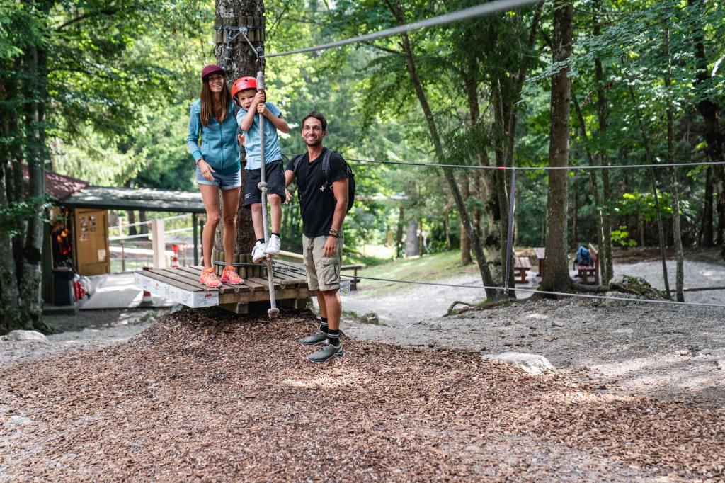 - Montagnoli Adventure Park (Madonna di Campiglio) – park między Lago Montagnoli a Malgą Montagnoli: trasy na różnych wysokościach, mosty, tyrolka nad wodą. System ciągłej asekuracji (Coudou Pro) i wymóg opiekuna dla dzieci <14 lat. Idealny na popołudnie „tuż z centrum”.