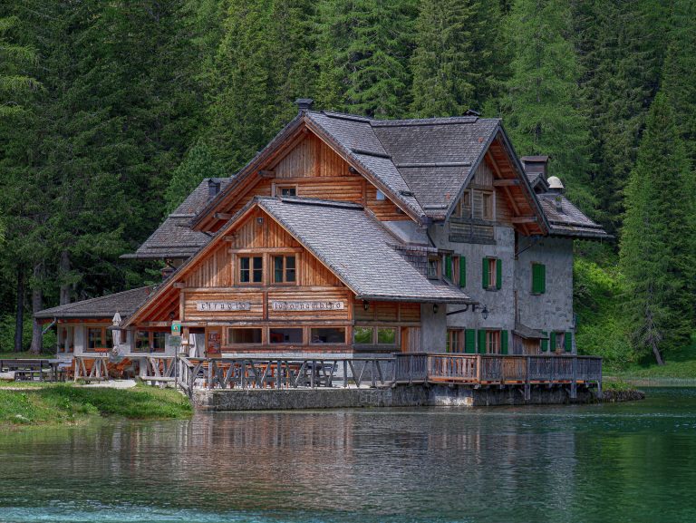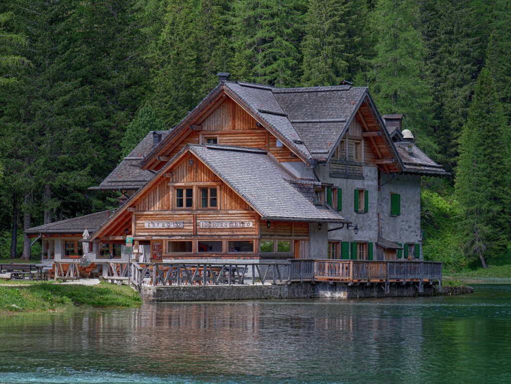 Turkusowe jezioro otoczone lasem i drewniane schronisko położone na wysokości 1780 m n.p.m. to jeden z najbardziej klasycznych punktów w okolicy Campiglio.